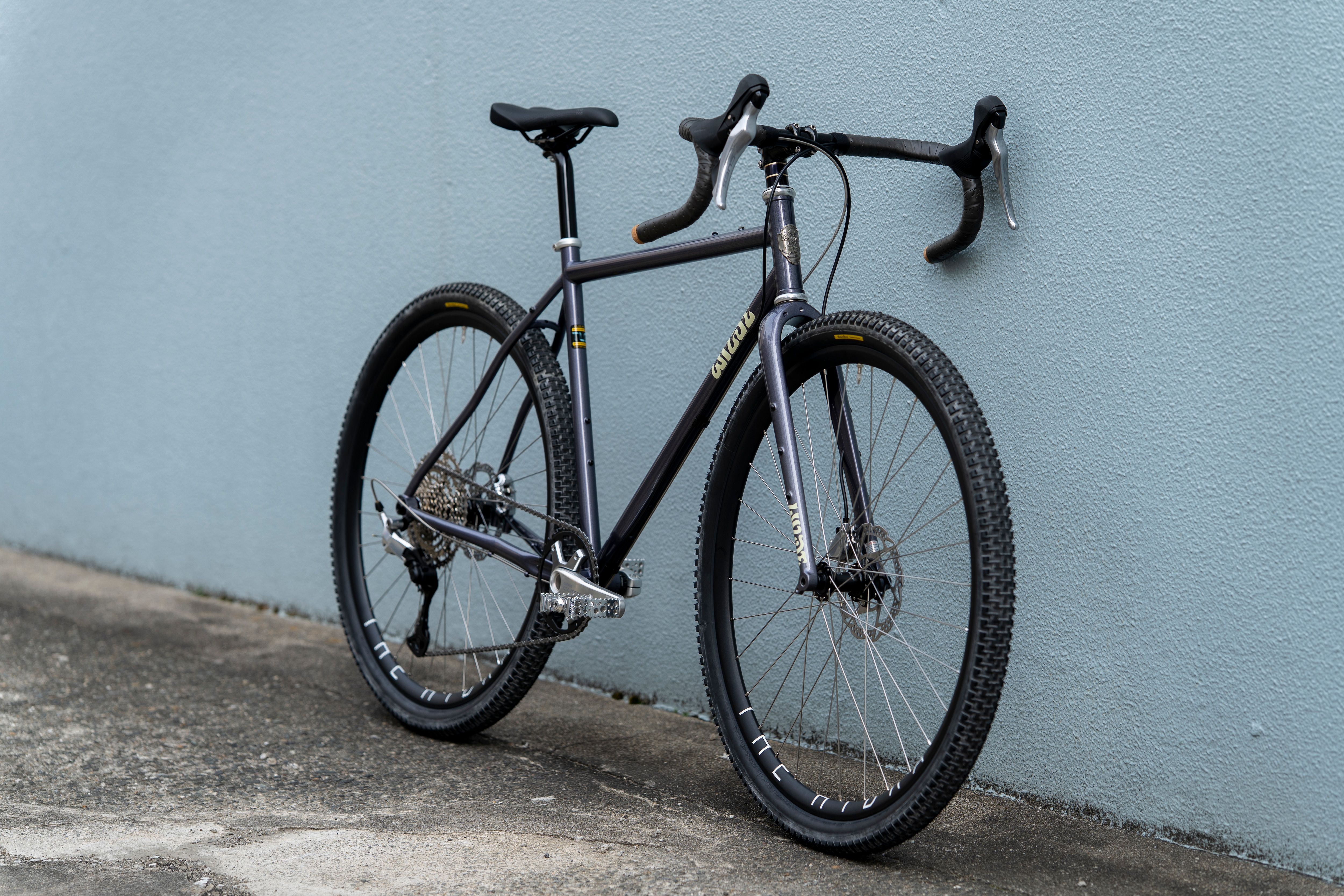 アルミフレームとWaxwingカーボンフォーク、ワイドなタイヤクリアランスにより、